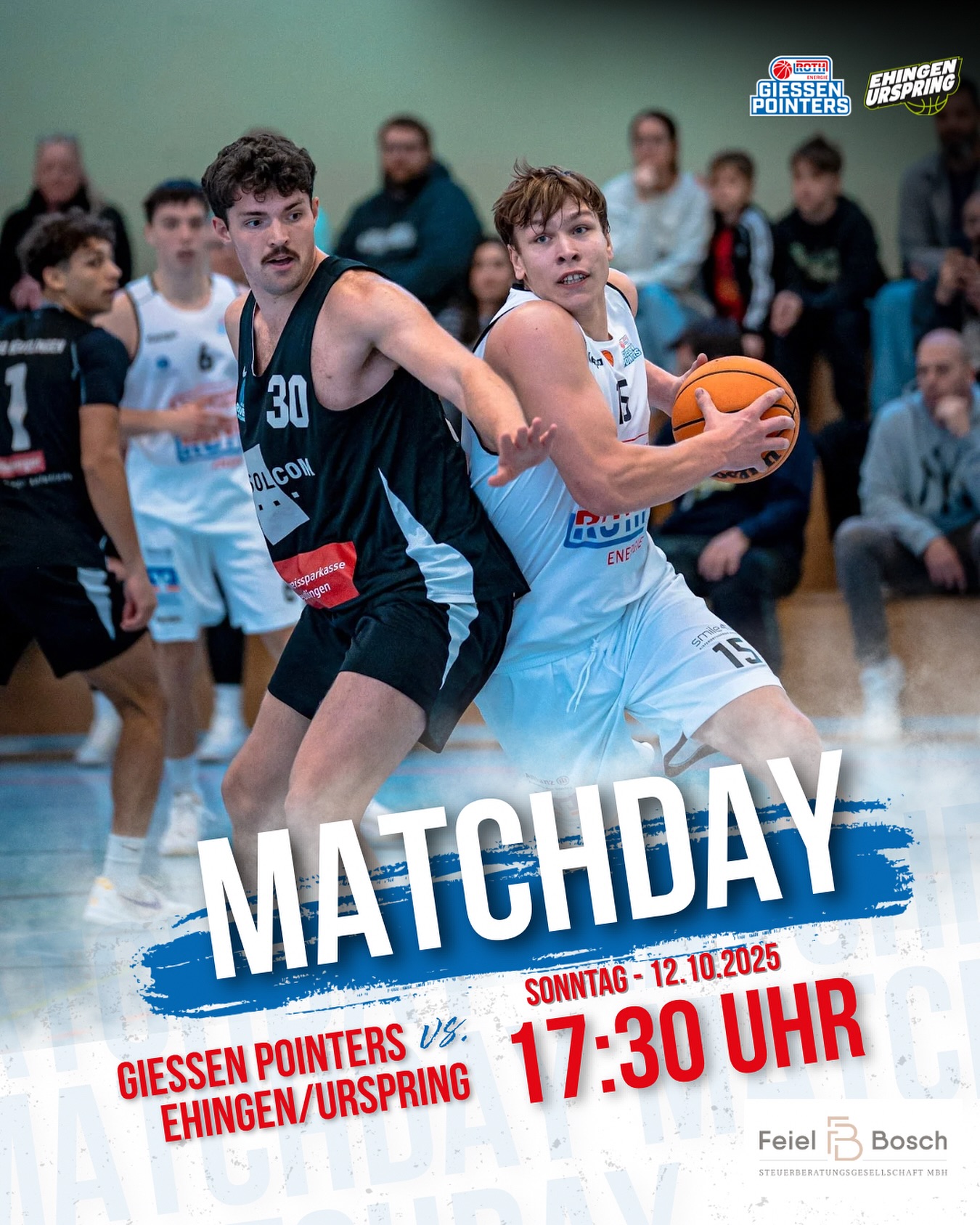 (cnf). Eine Woche nach der knappen Heimniederlage gegen Reutlingen (72:79) wollen die Gießen Pointers am dritten Spieltag der 1. Basketball-Regionalliga Südwest in die Erfolgsspur zurückkehren. Gegner am Sonntagabend ist dabei kein Geringerer als der derzeitige Tabellenführer: Das Team Ehingen/Urspring reist mit zwei Siegen aus zwei Spielen gen Mittelhessen und zählt laut Pointers-Headcoach Tobias Bender zum engsten Favoritenkreis der Liga.